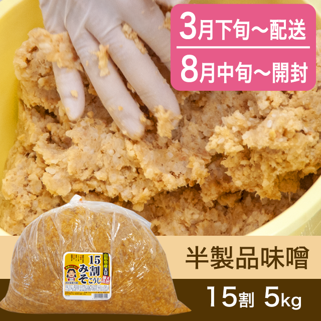 【春のキャンペーン対象商品・3月下旬発送】手作り味噌 【桶なし】半製品味噌 15割こうじ味噌 5kg