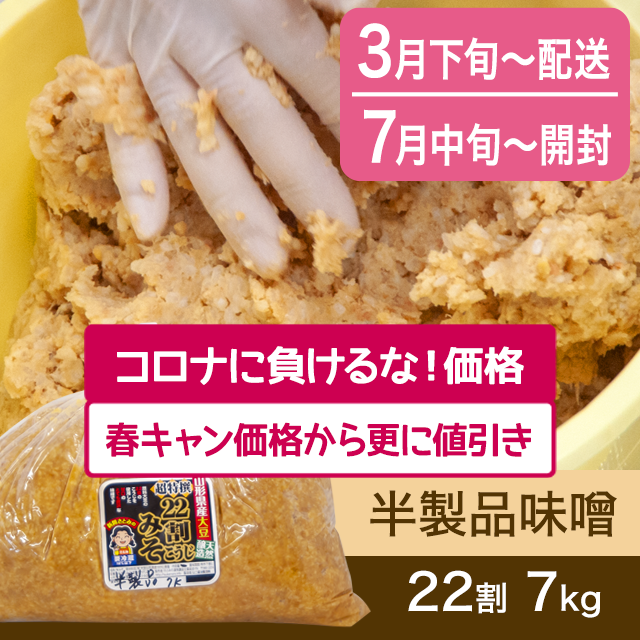 【春のキャンペーン対象商品・3月下旬発送】手作り味噌 【桶なし】半製品味噌 22割超特撰こうじ味噌 7kg