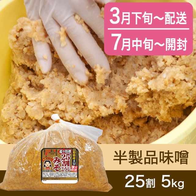 【春のキャンペーン対象商品・3月下旬発送】手作り味噌 【桶なし】半製品味噌 25割こうじ超々特撰味噌 5kg