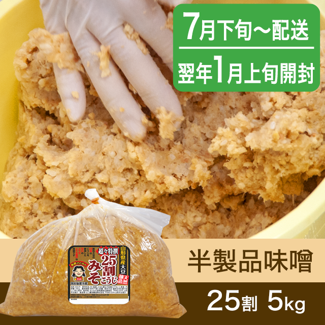 【春のキャンペーン対象商品・7月下旬発送】手作り味噌 【桶なし】半製品味噌 25割こうじ超々特撰味噌 5kg