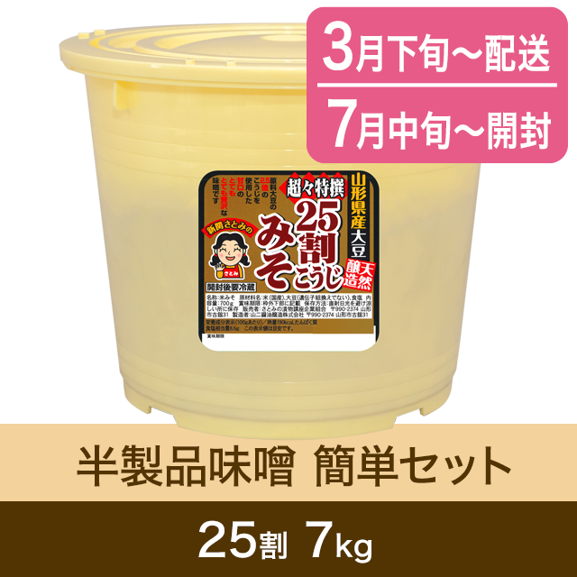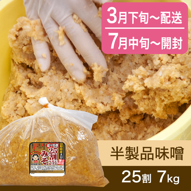 【春のキャンペーン対象商品・3月下旬発送】手作り味噌 【桶なし】半製品味噌 25割こうじ超々特撰味噌 7kg