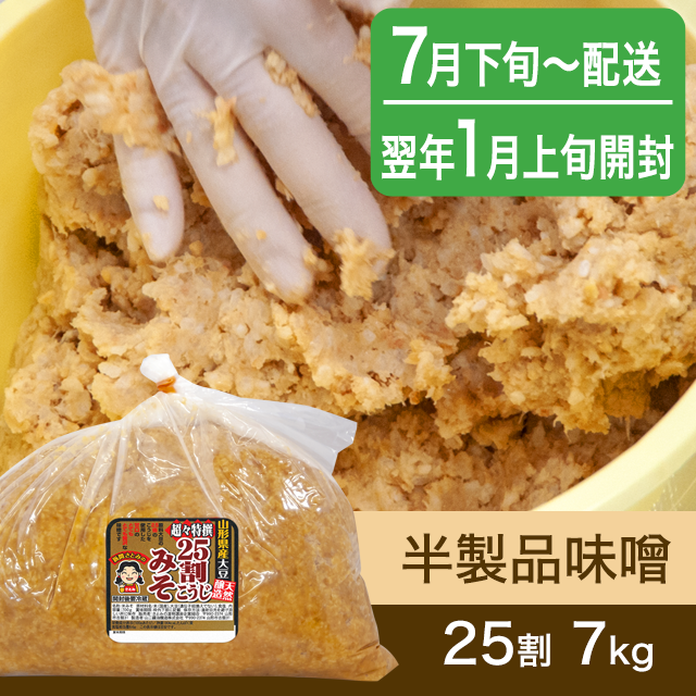 【春のキャンペーン対象商品・7月下旬発送】手作り味噌 【桶なし】半製品味噌 25割こうじ超々特撰味噌 7kg