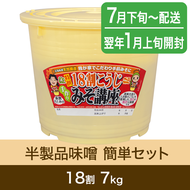 【春のキャンペーン対象商品・7月下旬発送】手作り味噌【桶・重石付】半製品 簡単セット 18割こうじ贅沢味噌 7kg