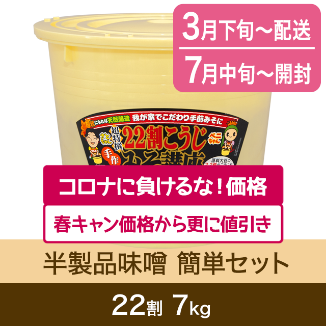 【春のキャンペーン対象商品・3月下旬発送】手作り味噌 【桶・重石付】半製品 簡単セット 22割こうじ超特撰味噌 7kg