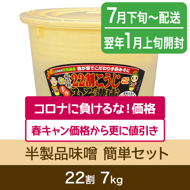 【春のキャンペーン対象商品・7月下旬発送】手作り味噌【桶・重石付】半製品 簡単セット 22割こうじ超特撰味噌 7kg
