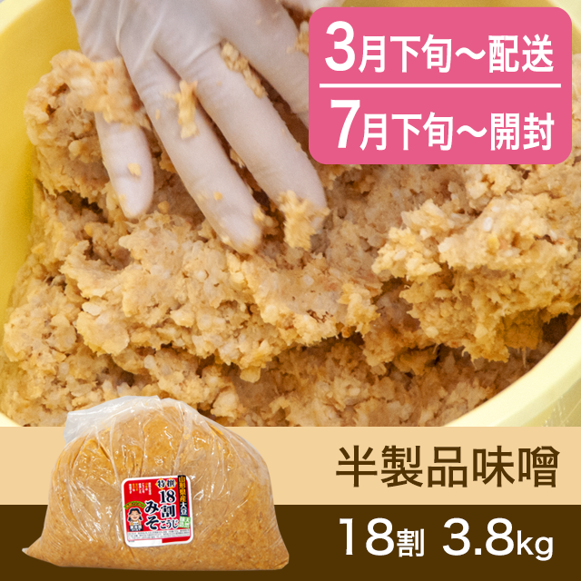 【春のキャンペーン対象商品・7月下旬発送】手作り味噌 【桶なし】 半製品味噌 18割こうじ贅沢味噌 3.8kg