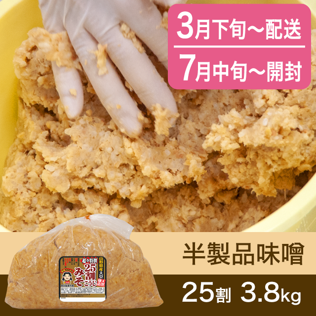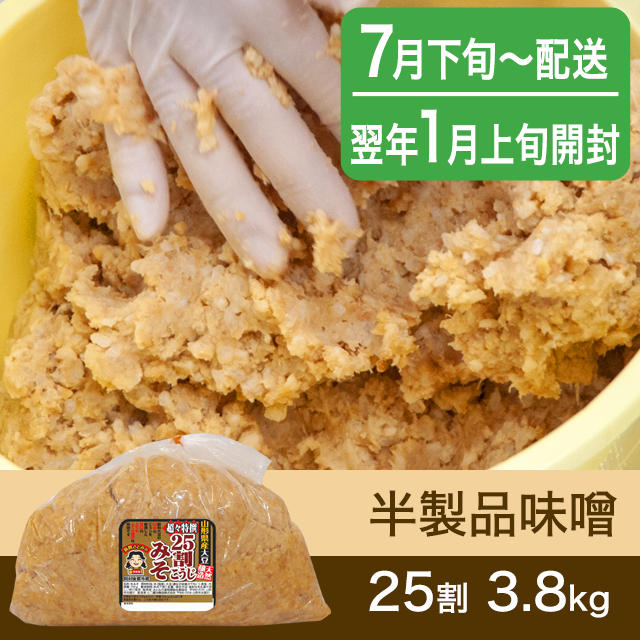 【春のキャンペーン対象商品・7月下旬発送】手作り味噌 【桶なし】半製品味噌 25割こうじ超々特撰味噌 3.8kg