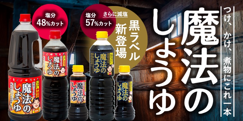 ●当社自慢の魔法のしょうゆ。減塩で甘口の新感覚の醤油です!今まで、醤油なんてどれでも同じだと思っていた方にぜひ、試していただきたい1本です!